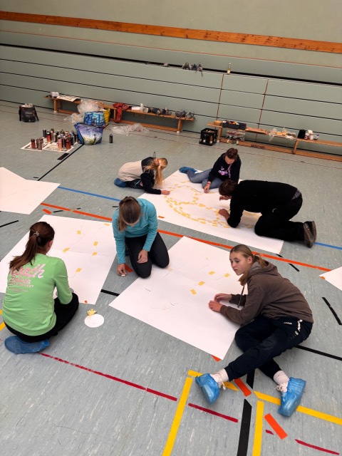 Begleitet wurden sie dabei von einem Künstler von Rebel Art aus Chemnitz. Eine echte Herausforderung war der Untergrund: Filz verzeiht nichts, saugt Farbe und verlangt höchste Konzentration. Trotzdem arbeiteten die jungen Sportlerinnen den gesamten Nachmittag über hochkonzentriert, ausdauernd und mit beeindruckender Ernsthaftigkeit an ihrem Werk.