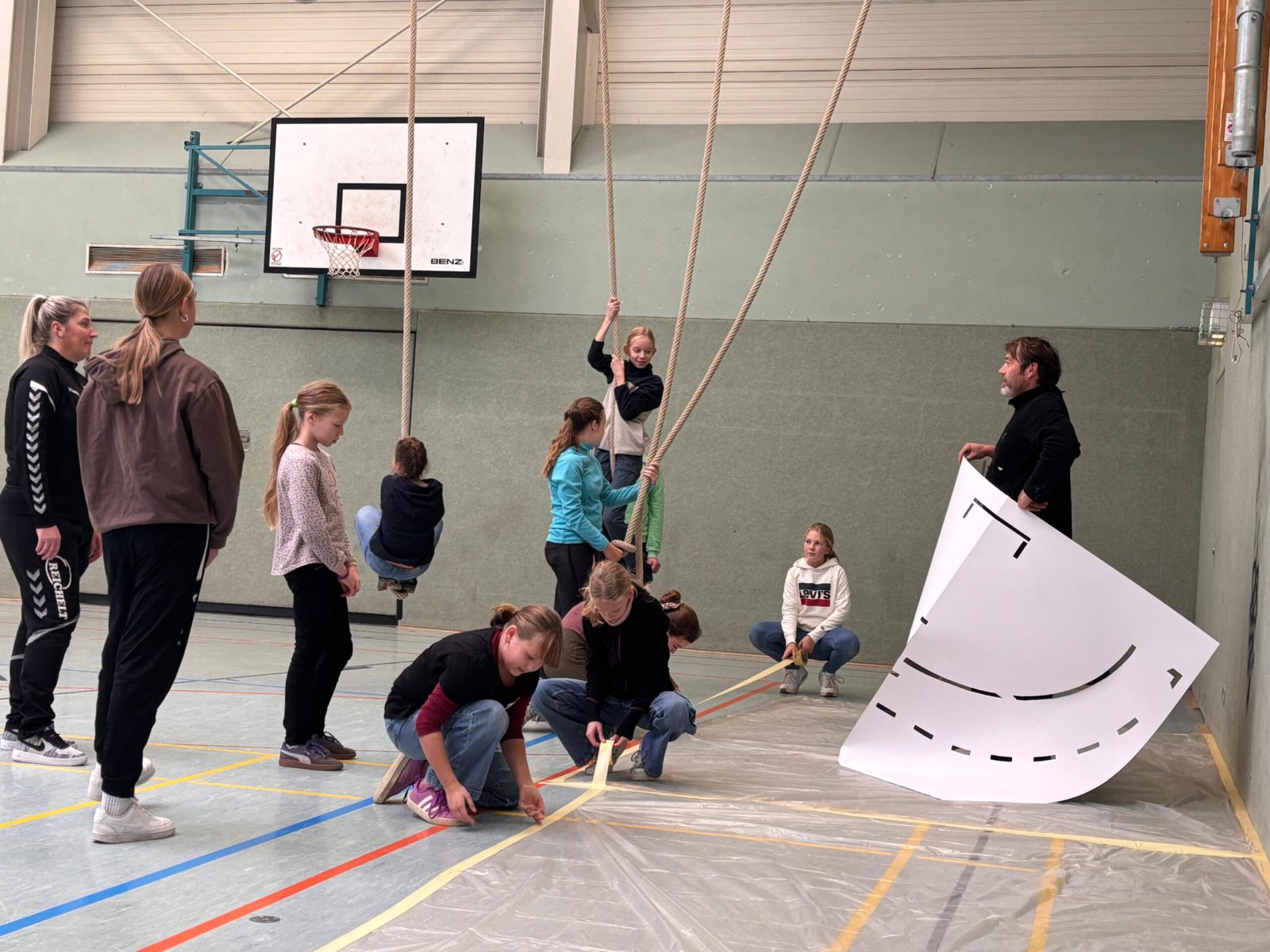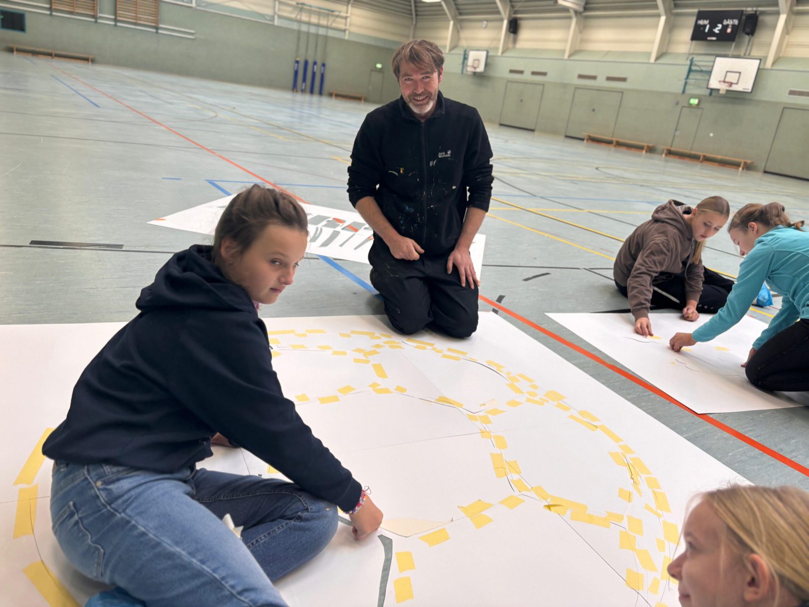 Hintergrund des Projekts waren Schmierereien aus Ende 2024. Damals waren an den Filzwänden der Halle verfassungsfeindliche Symbole aus einem Akt von Vandalismus aufgetaucht. Statt die Spuren lediglich zu beseitigen, sollte diesmal bewusst etwas Neues entstehen – sichtbar, positiv und eindeutig. Die Antwort der Mädchen zwischen 10 und 12 Jahren: „Fairplay“.